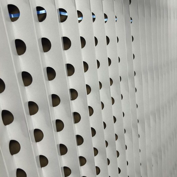 Made from two sheets of heavy paper containing staggered rows of perforations. This then forces the air to pass through the filter with quick turns. Thus making the paint laden air and particulates deposits to attach themselves to the filter as they hit the surfaces within before the cleaner air leaves the filter.
